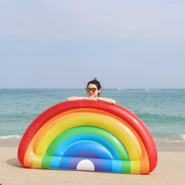 Εντυπωσιακό, πολύχρωμο φουσκωτό ουράνιο τόξο για τη θάλασσα και την πισίνα!