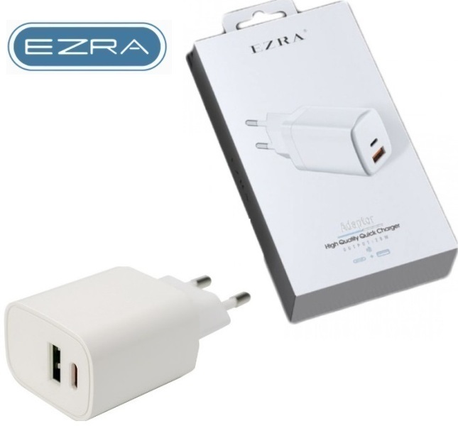 Διπλός φορτιστής με θύρα USB και θύρα Type-C 20W λευκός HC60 EZRA EZRA