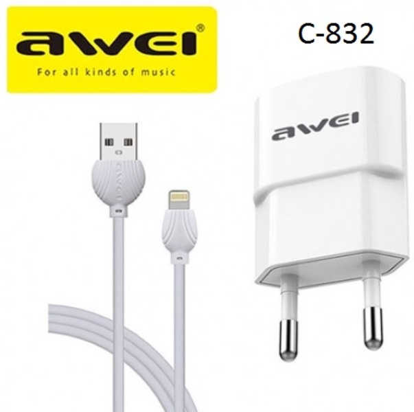Φορτιστής πρίζας AWEI με καλώδιο φόρτισης Lightning.