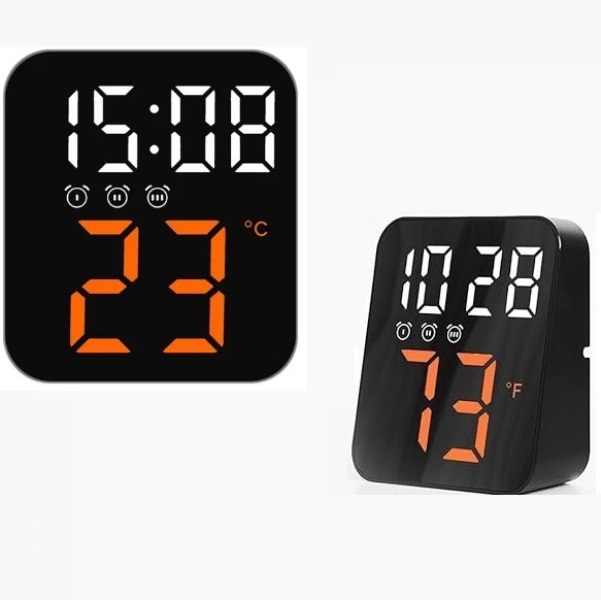Επαναφορτιζόμενο ξυπνητήρι μαύρο με λευκό-πορτοκαλί ψηφία GH8015 OEM