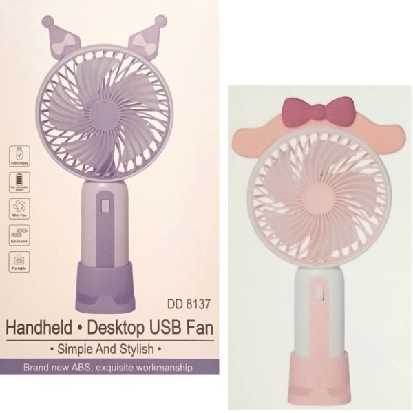 Επαναφορτιζόμενος ανεμιστήρας χειρός USB ροζ-λευκό DD 8137Α OEM