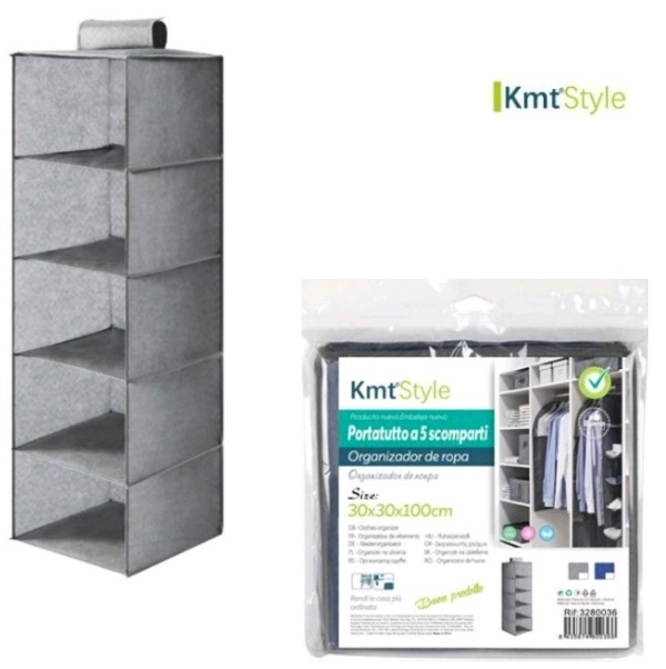 Κρεμαστή υφασμάτινη θήκη αποθήκευσης 5 ράφια γκρι 3280036 OEM