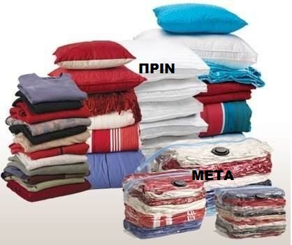 Τοποθετείτε ρούχα,σεντόνια,κουβέρτες,κλπ. μέσα στην σακούλα,κλείνετε την σακούλα και με την ηλεκρική σκούπα απορροφάτε όλο τον αέρα από την ειδική βαλβίδα.Ο όγκος έχει μειωθεί στο 25% του αρχικού.